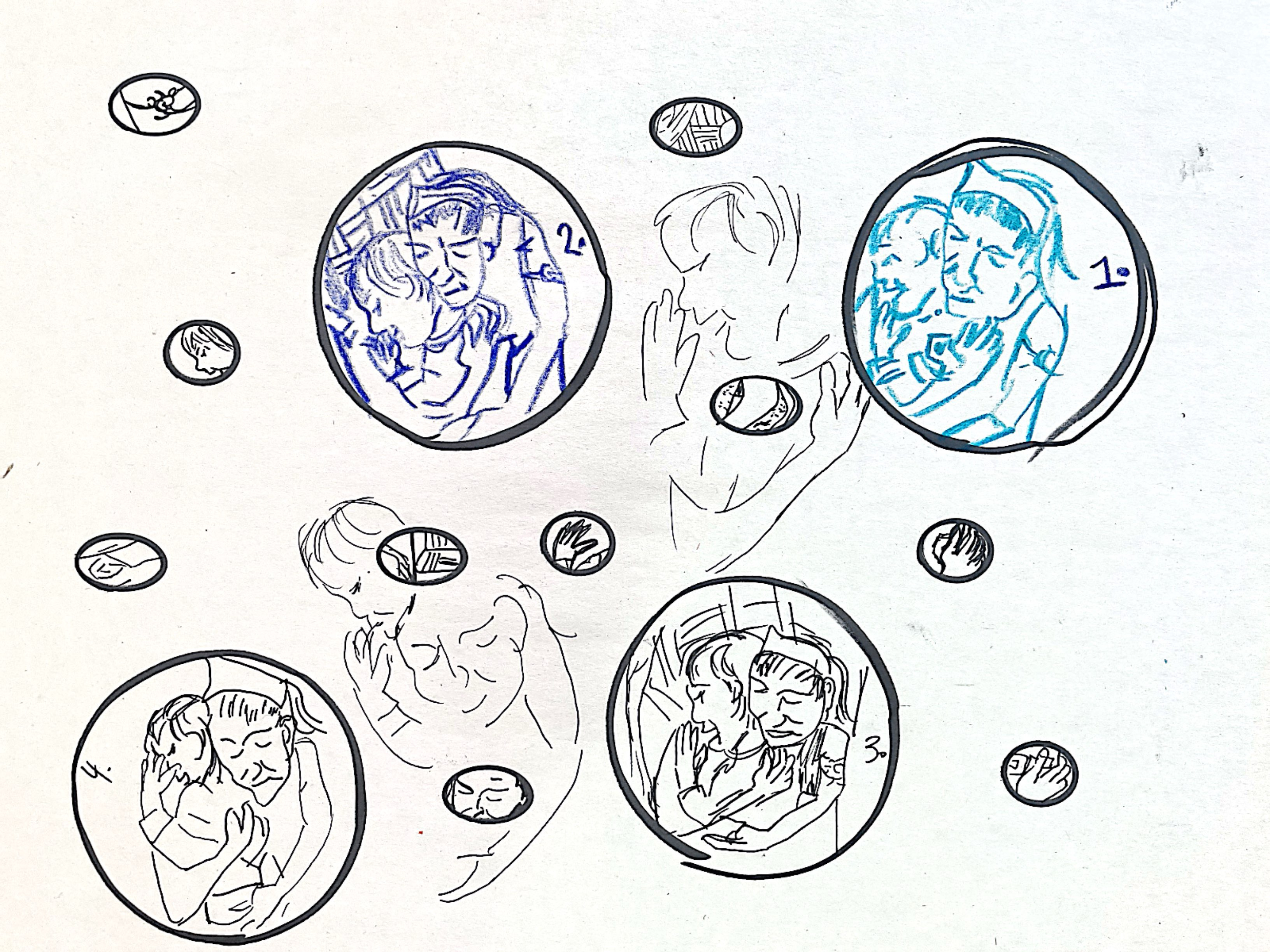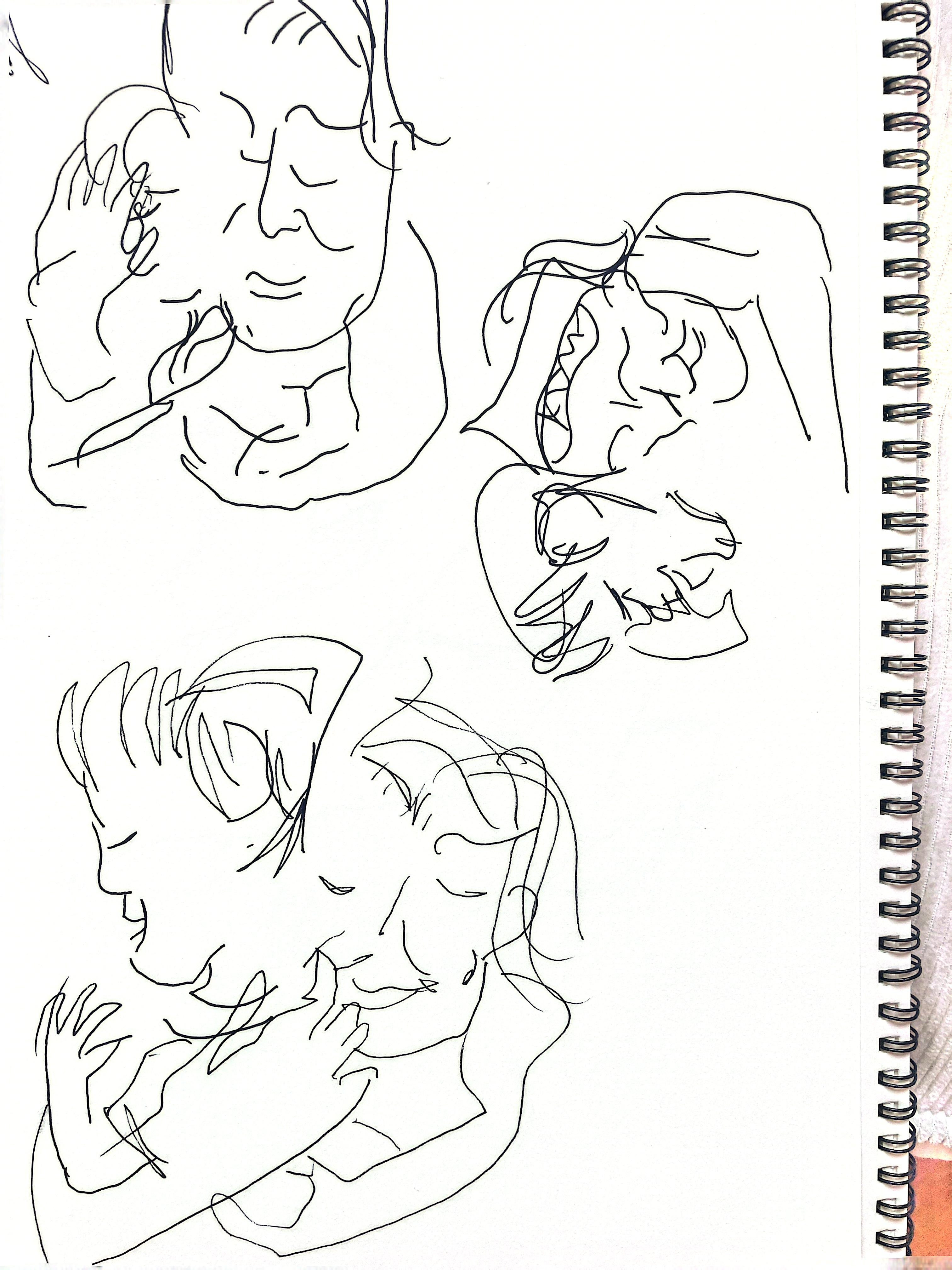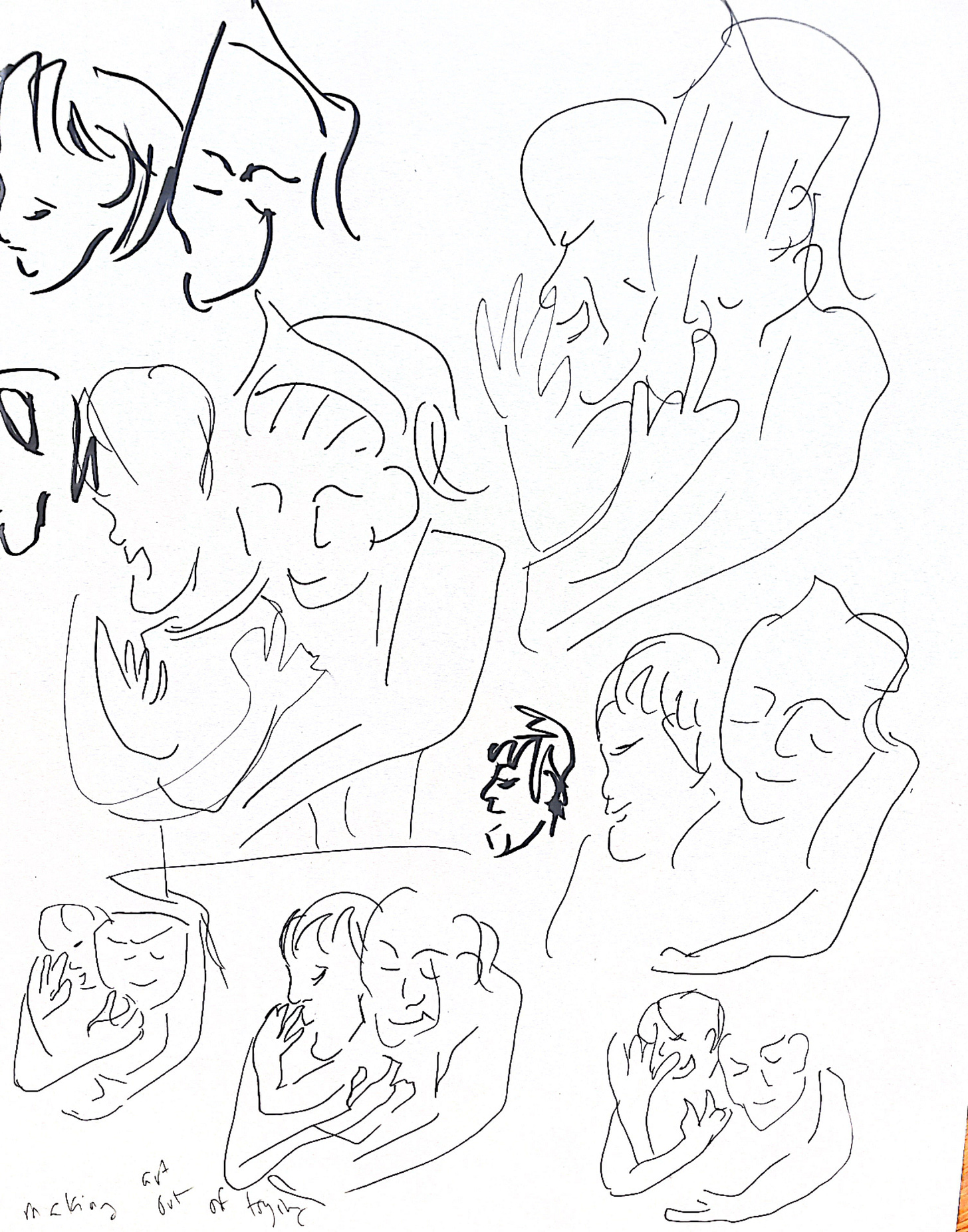 When I started scanning my sketches for this piece, I had to laugh at myself. I knew I’d drawn the image over and over, but I didn’t realize how many sketches and pages it added up to. I felt satisfaction in the sheer volume of my effort—not unlike running a marathon. I feel a little pride that I have no finished product to show for it. I read somewhere a long time ago that when you hit roadblocks in your creative work, you can take comfort in the fact that you’re actually doing the thing and not just dreaming about doing the thing. And wow—as I typed that out, I started to choke up, so my body agrees.