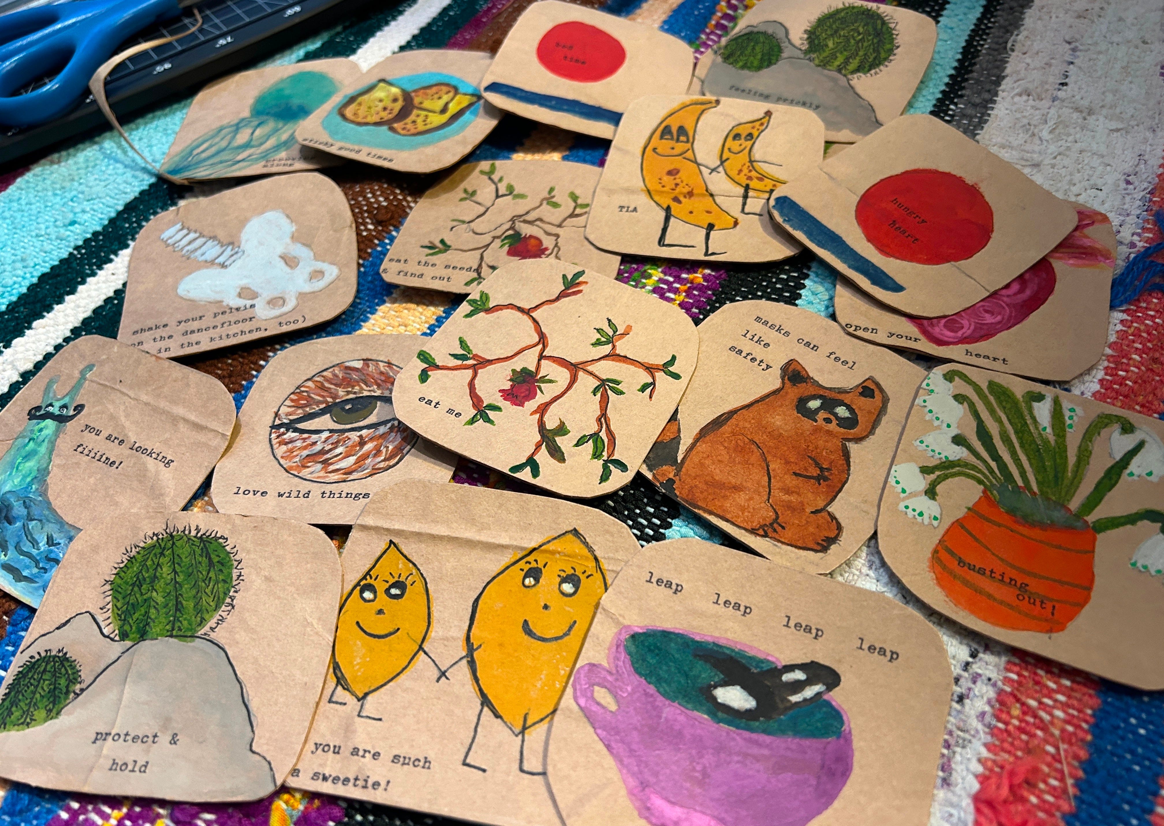 The first 50 backers will receive signed copies of the book, plus a handmade bookmark. In honor of our emergent joyful practice principle, “we follow our creative impulses,” the bookmarks will be unique to the moment they were created (expect summer gardens, farm critters, and Salish Sea creatures to make appearances!)