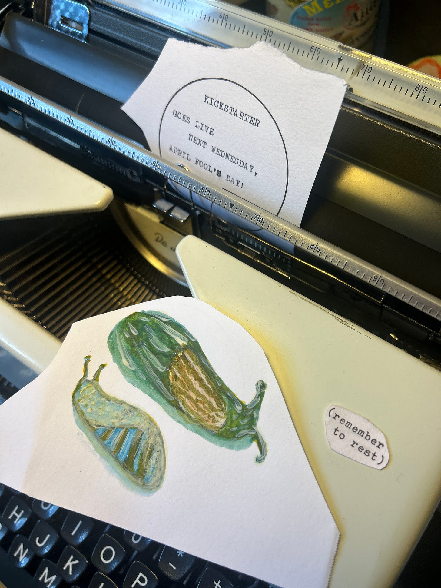 Much of the advice we’ve received about running a Kickstarter campaign tells us to treat it like a full time job. This advice creates a tension point for Jenn and me because what we are building together is definitely anathema to the drudgery and exhaustion most of us experience in our jobs. Our desire is to liberate ourselves from the capitalist assumption that success is tied to our ability to buybuybuybuybuy (even at the expense of our planet) and gogogogogogogogo (even at the expense of rest and listening to the needs of our tired animal bodies).
