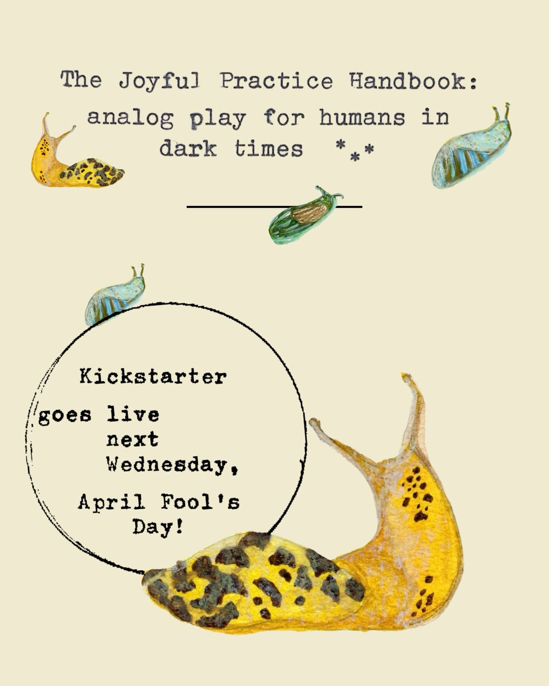 I’ve used the term analog+digital estuary to describe the process Jenn and I are going through to turn an analog-created object into a digital object that can be handed into a printer and turned into a book-shaped object that we want each of you to some day soon hold in your hands. It occurs to me now that we are also swimming in a joyful practice+capitalism estuary. The necessary work of building and running a Kickstarter campaign means that we will have to ride the tension of both/both, acknowledging the ways we participate in capitalism and use it as a tool, while also, at the same time, not abandoning the joyful practice principles that can guide us through this next phase of bringing our book into the world